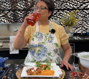 Remove the chicken and allow it to cool slightly. Strain the cooking liquid and reserve about 2 cups of the broth for the enchilada sauce. Chop or shred the chicken into small pieces and set aside.