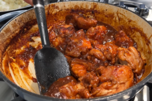 If you enjoy dishes that balance sweet and savory flavors, this sticky Coca-Cola chicken is a recipe you’ll want to try. The chicken slowly simmers in a rich sauce made with Coca-Cola, garlic, ginger, and savory seasonings until it becomes tender and coated in a beautiful caramelized glaze. The result is juicy chicken with a glossy, slightly sticky sauce that’s packed with flavor.