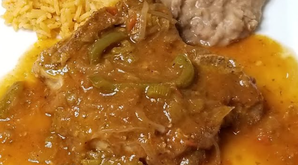 - Serve: Taste the sauce and adjust salt if necessary. Remove the bay leaf and serrano pepper (or leave the serrano in for extra flavor). Serve the smothered pork chops hot with plenty of sauce, warm corn tortillas, Mexican rice, and refried beans.