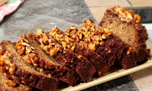 This easy, no-fuss upside-down banana bread is pure comfort in every slice. Sweet, ripe bananas create a moist, tender loaf topped with a sticky, caramel-like walnut layer that becomes golden and crunchy as it bakes. The warm spices (cinnamon and a hint of cloves) make it smell incredible and taste even better. It’s perfect for Thanksgiving, Christmas, or any time you want a cozy homemade treat — just mix, bake, cool, and flip for a beautiful presentation.