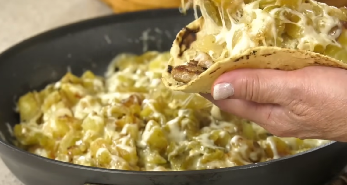 Gold potatoes hold their shape well and get nicely crispy. Pat them very dry before frying for the best crust. The roasted peppers are the star — their smoky flavor pairs perfectly with the cheese. Use a mix of Anaheim (mild) and Hatch (mild to medium heat) for balanced flavor. Freshly shredded cheese melts much better than pre-shredded. Leftovers reheat well in a skillet with a splash of water or broth to loosen them up.